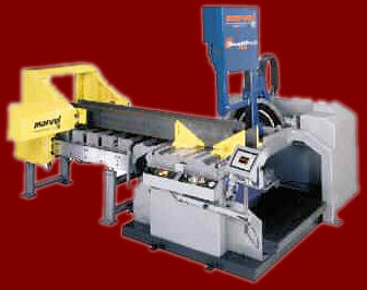 Marvel Touchtech 60 CNC Bandwaw with nesting capabilities and auto shuttle capable of cutting structural steel.